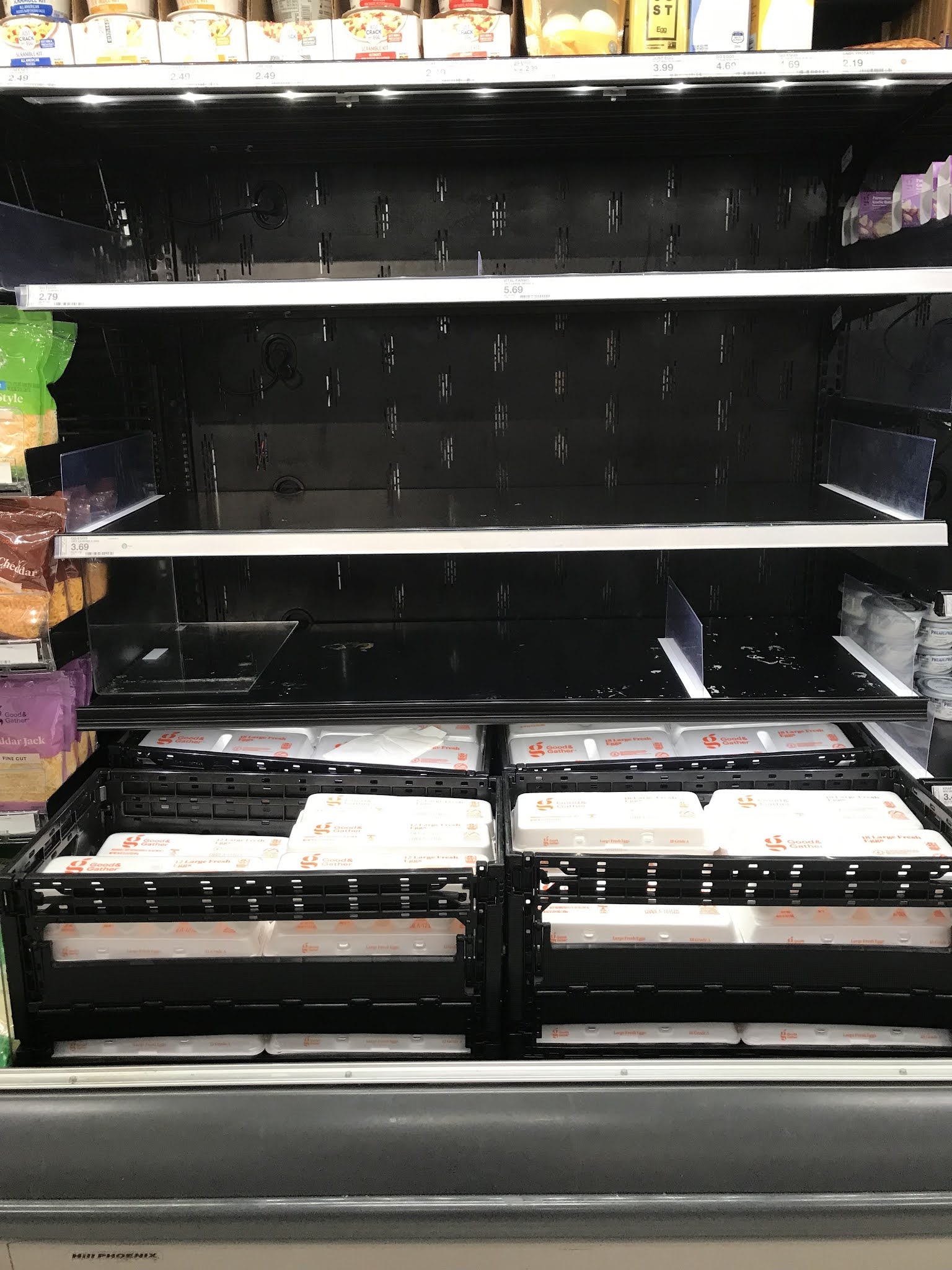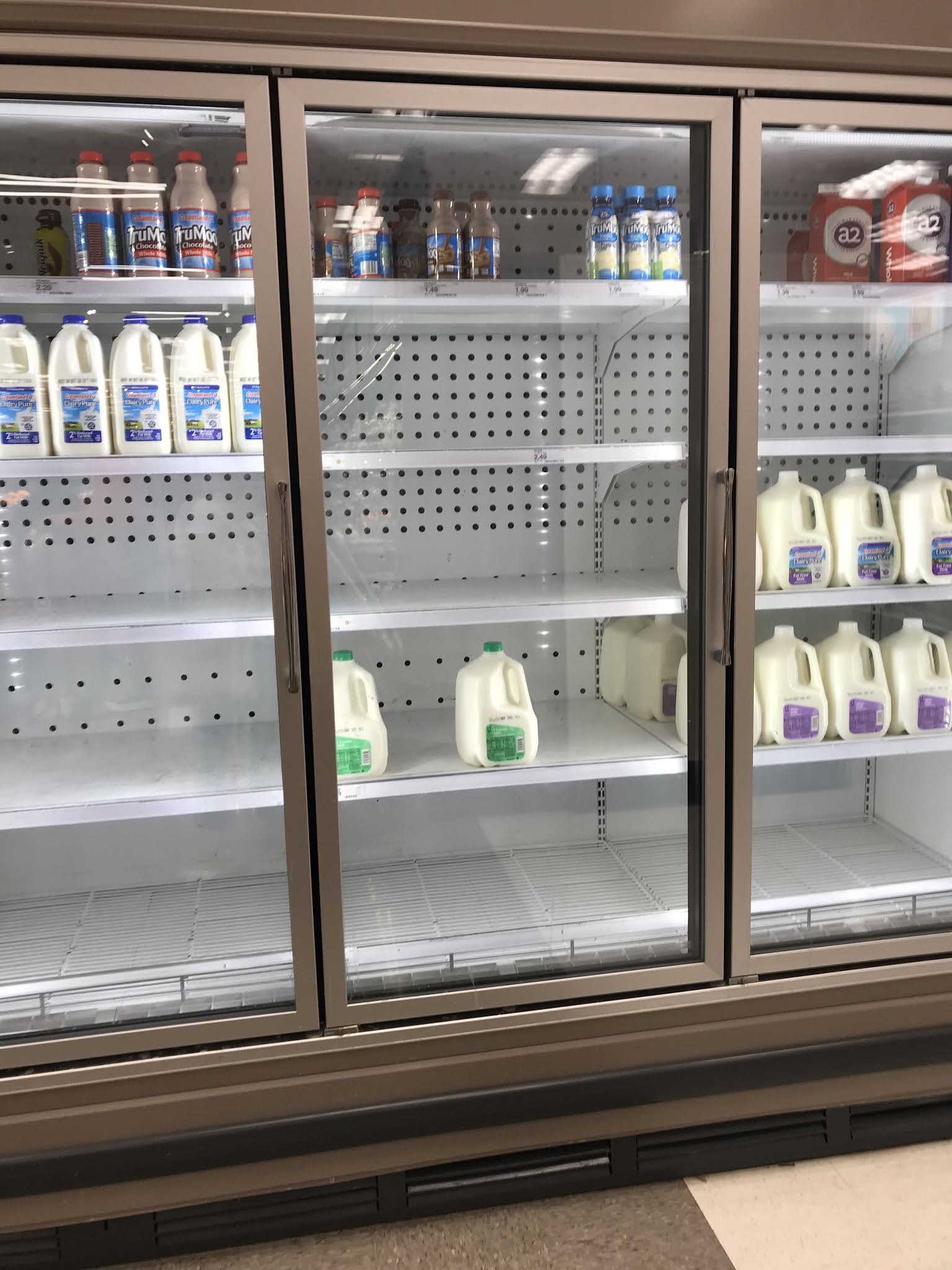 In many cases, different states and different stores are showing shortages of the same products, such as the dairy sections, more indicative of a product issue than a stocking issue, as shown below.