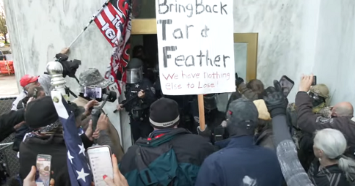 The liberal media is all freaked out over freedom loving patriots protesting at the Oregon State Capitol during a special session which lawmakers locked the citizens out refusing to let their voice be heard. Some were armed, others carrying America flags, one amusingly had a pitchfork, all making it clear they will not tolerate being ignored as others make life altering decisions for them.