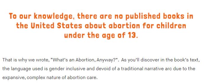 The book is called "What's an Abortion, Anyway" listed as a "Children's book about abortion.