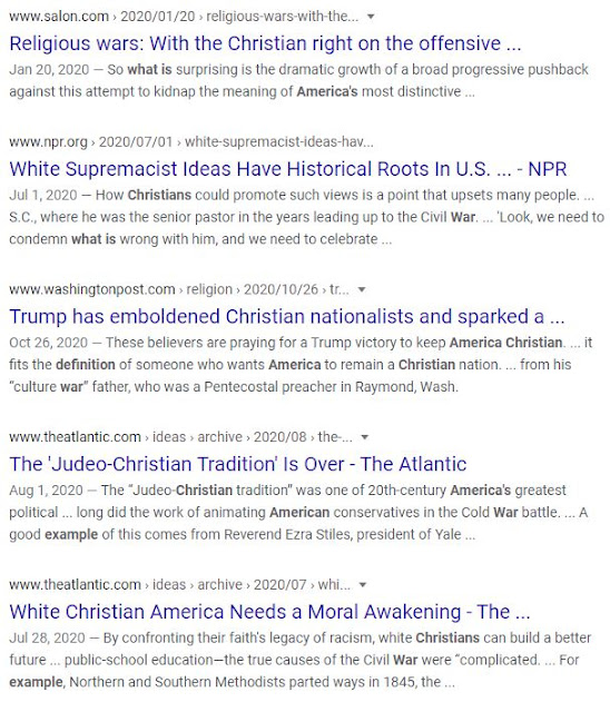 Because liberals again deny there is a war on Christianity, just a quick search on Google (deliberately used Google as they highlight articles that attack Christians), we see just these few from 2020 on the front page... but there are many more pages of examples.