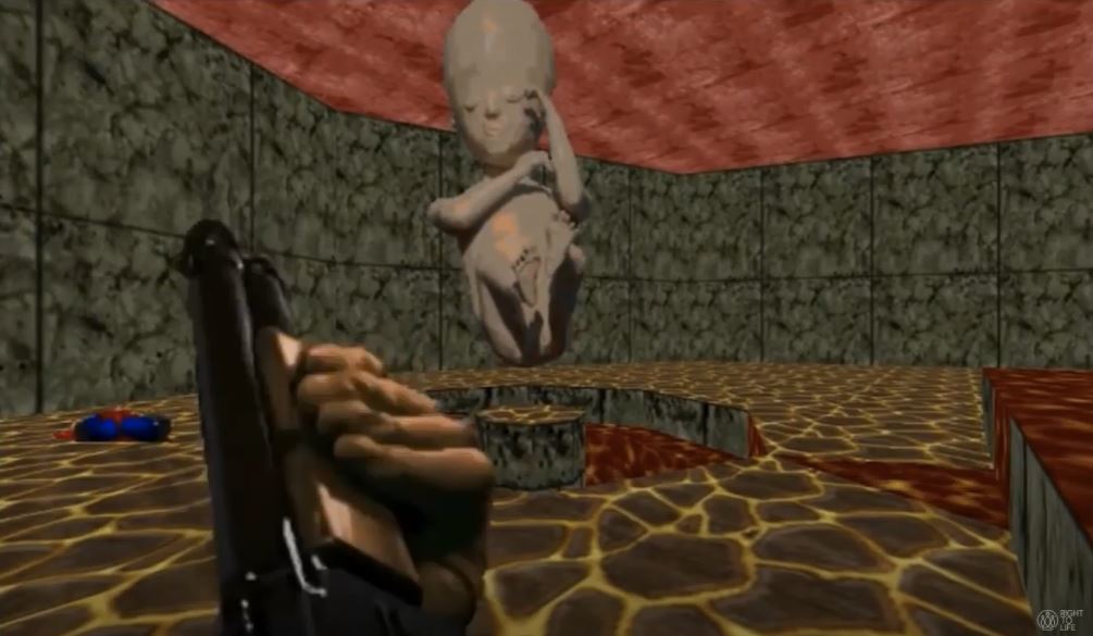 “Doom Fetito is a deeply perverse form of activism,” Ms. Robinson said. “The game involves killing pro-life women before shooting to death an unborn baby with a shotgun at the end.”