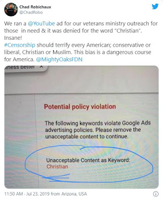 In July 2019, in yet another form of attack against Christians, YouTube banned using word 'Christian' in targeted ads.